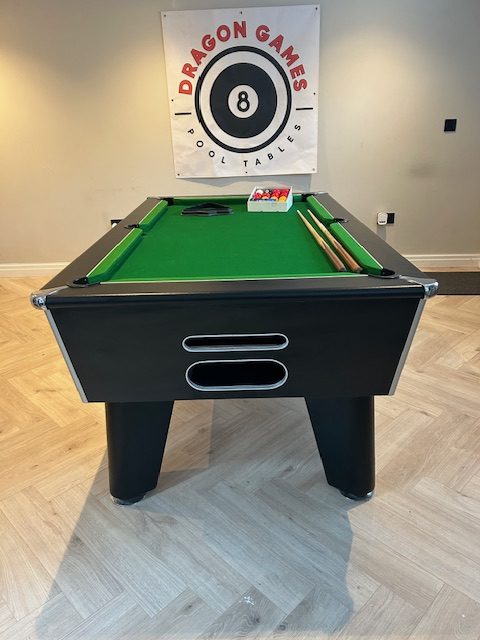 The Classic Coin Operated (mechanical) Pool Table is slate bed table and they are 100% British made. They are built by skilled craftsmen at Optima Pool, a leading UK manufacturer of championship quality pool tables.