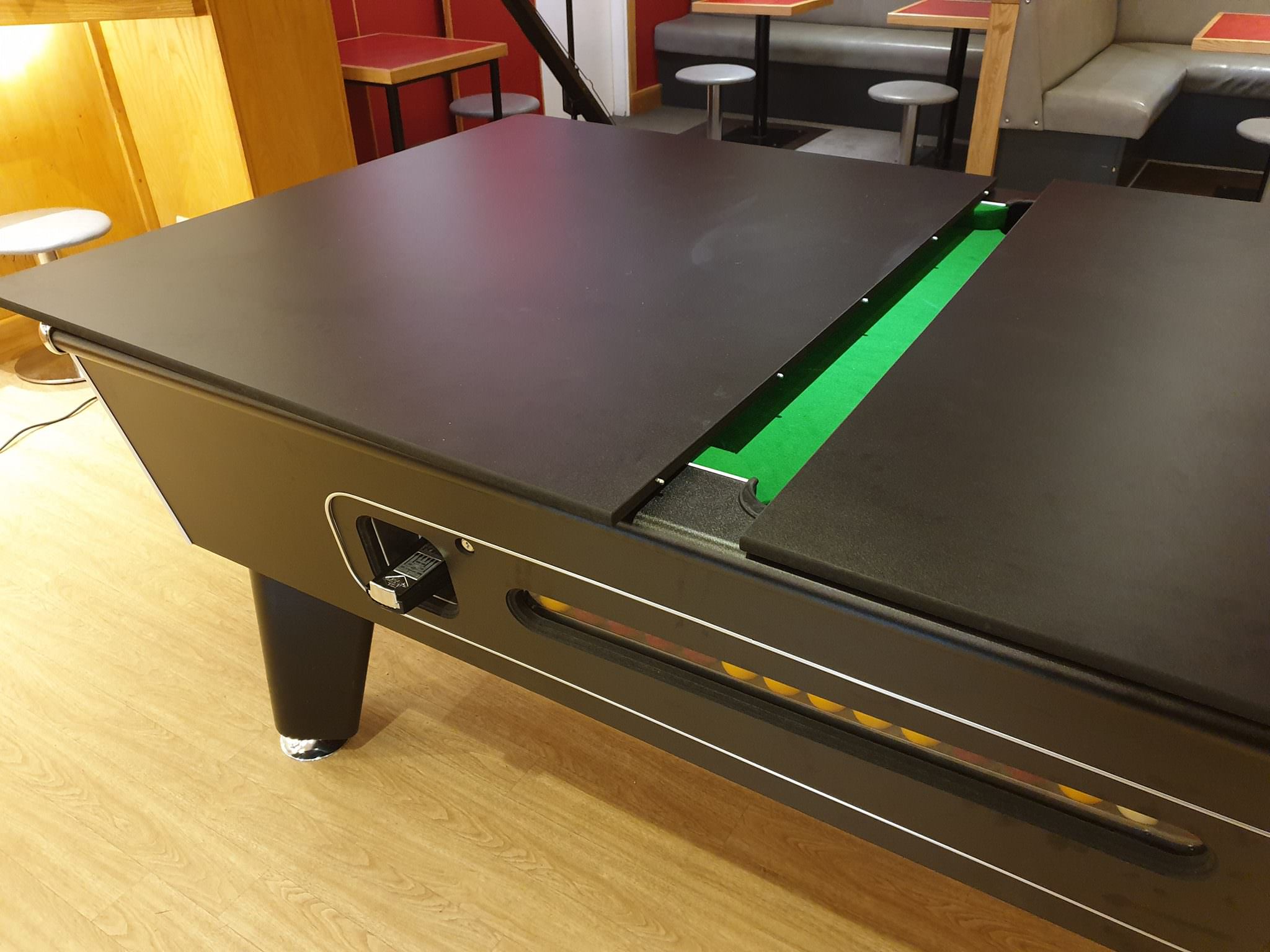 Blackball Tables have an internal ball return system and Interchangeable drawer units offering Free play, Coin Operated (Mechanical) or Electronic (Multi-coin) options. (some images may show free play tables – on for colour reference only)