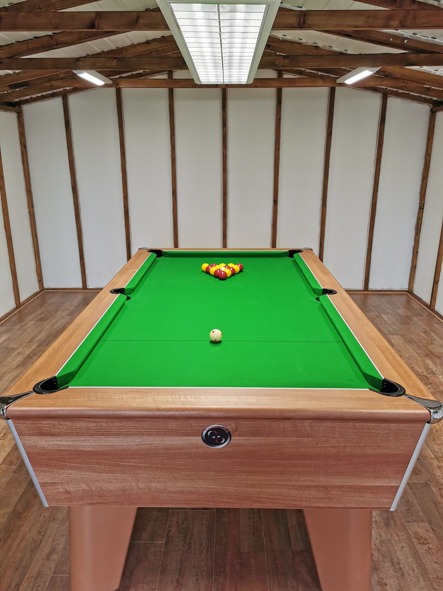 The table comes complete with accessories: 2 x Ash cues (48” with 6ft tables and 57” with 7ft tables), Aramith red and yellow balls, triangle and chalk.